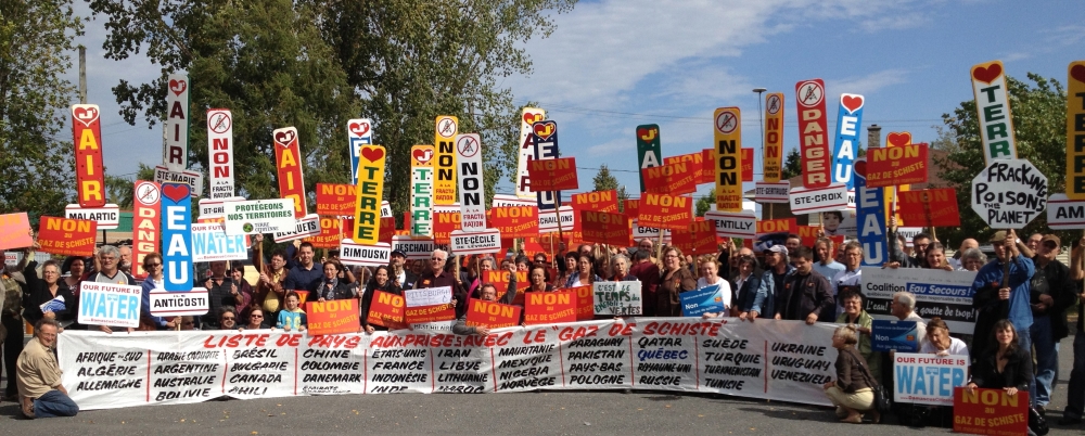 Réunis à Rio de Janeiro le jeudi 22 Juin 2012 durant le Sommet des Peuples, les militants et organisations engagés dans le monde entier dans la lutte contre les gaz et huile de schiste, le gaz de houille et les schistes bitumineux, dont l’AQLPA, ont affirmé de manière déterminée leur opposition à toutes formes d’extraction des gaz et huile de schiste et à l’utilisation de la fracturation hydraulique et aux autres techniques d’extraction apparentées comme l'utilisation du sable de fracturation, ce sur l’ensemble de leurs territoires.